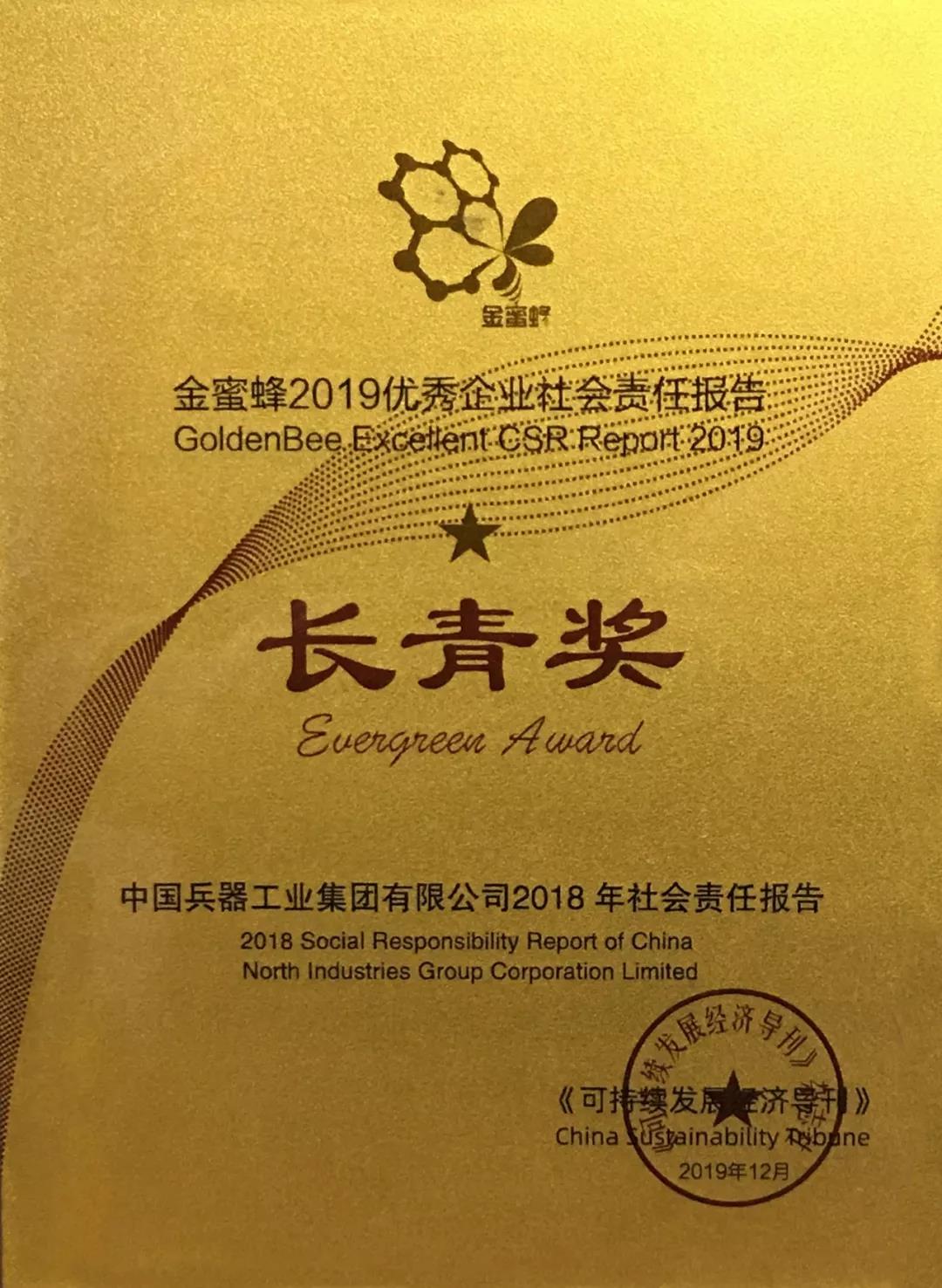 12月5日,在第十二屆中國企業(yè)社會責(zé)任報告國際研討會發(fā)布的“金蜜蜂2019優(yōu)秀企業(yè)社會責(zé)任報告榜”上,《中國兵器工業(yè)集團有限公司2018年社會責(zé)任報告》從近1600份報告中脫穎而出,連續(xù)第二年榮獲“金蜜蜂優(yōu)秀企業(yè)社會責(zé)任報告·長青獎”。同時,也是連續(xù)第6年獲得優(yōu)秀企業(yè)社會責(zé)任報告獎項。