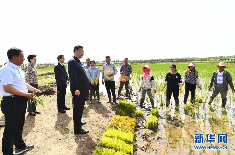 6月8日至10日,中共中央總書(shū)記、國(guó)家主席、中央軍委主席習(xí)近平在寧夏考察。這是6月9日下午,習(xí)近平在銀川市賀蘭縣稻漁空間鄉(xiāng)村生態(tài)觀光園,同正在勞作的村民親切交談。 新華社記者 鞠鵬 攝