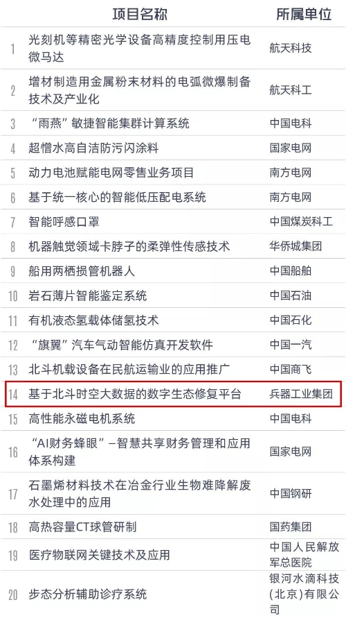 為落實(shí)黨中央、國務(wù)院關(guān)于加快實(shí)施創(chuàng)新驅(qū)動(dòng)發(fā)展戰(zhàn)略、深入推進(jìn)大眾創(chuàng)業(yè)萬眾創(chuàng)新的決策部署,加快推動(dòng)中央企業(yè)創(chuàng)新創(chuàng)業(yè)高質(zhì)量發(fā)展,國資委于2020年9月組織開展了第三屆中央企業(yè)熠星創(chuàng)新創(chuàng)意大賽。 大賽啟動(dòng)以來,各中央企業(yè)積極組織參加,社會(huì)創(chuàng)新團(tuán)體踴躍參與,共3340個(gè)項(xiàng)目、2.3萬余人報(bào)名參賽。通過項(xiàng)目初選和復(fù)選,共有516個(gè)項(xiàng)目面向社會(huì)進(jìn)行了投資路演和對(duì)接,吸引眾多投資機(jī)構(gòu)和知名企業(yè)參與,達(dá)成一批合作意向。 經(jīng)總決賽評(píng)選,共評(píng)選出一等獎(jiǎng)20項(xiàng)、二等獎(jiǎng)30項(xiàng)、三等獎(jiǎng)50項(xiàng)、優(yōu)秀獎(jiǎng)100項(xiàng),中國兵器工業(yè)集團(tuán)有限公司4個(gè)項(xiàng)目獲獎(jiǎng)并榮獲“優(yōu)秀組織單位”。 兵器工業(yè)集團(tuán)獲獎(jiǎng)項(xiàng)目 一等獎(jiǎng)(1個(gè)) 基于北斗時(shí)空大數(shù)據(jù)的數(shù)字生態(tài)修復(fù)平臺(tái)(創(chuàng)意類) 三等獎(jiǎng)(1個(gè)) 三合一北斗智能邊海防管控終端(創(chuàng)新類) 優(yōu)秀獎(jiǎng)(2個(gè)) 基于北斗的鐵路工程測量創(chuàng)新應(yīng)用(創(chuàng)意類) 公共交通一體化智慧監(jiān)測系統(tǒng)(創(chuàng)新類) 完整獲獎(jiǎng)名單 |