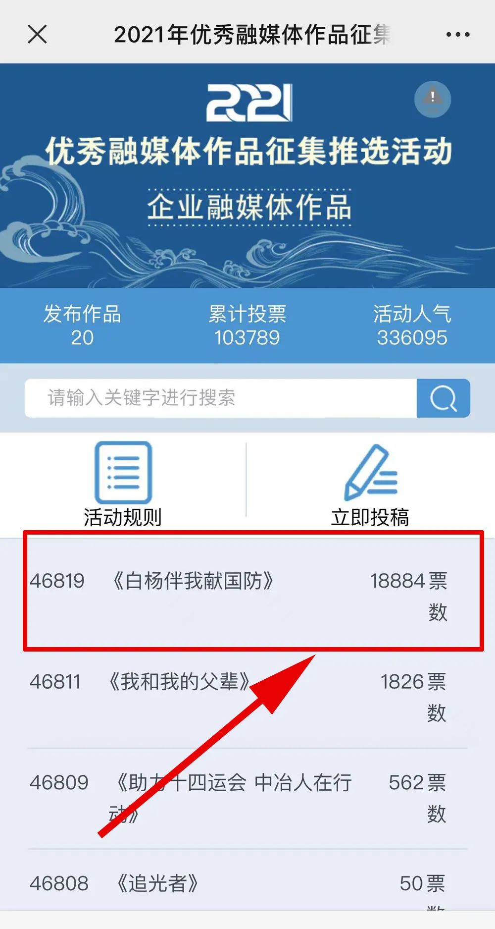 近日,由“文化強國”光明日報協(xié)同推廣平臺、光明網(wǎng)、北京師范大學(xué)新媒體傳播研究中心和光明天翼5G融媒實驗室共同主辦的“2021年優(yōu)秀融媒體作品征集推選活動”開啟線上投票環(huán)節(jié),經(jīng)過專家委員會評審,中國兵器工業(yè)集團北重集團《白楊伴我獻國防》音樂MV入選活動前二十名,并進入網(wǎng)絡(luò)投票環(huán)節(jié)。 《白楊伴我獻國防》 楊樹參天 高聳云端的是兵工人 “履行好強軍首責(zé)”的壯志凌云! 深植北疆 傾獻沃土的是北重人 “推動高質(zhì)量發(fā)展”的壯志豪情! 白楊樹伴著我們茁壯成長 見證著我們獻身國防! 投票方式 1.掃描下方二維碼,進入初始界面,點擊“企業(yè)融媒體作品征集”,進入投票界面點擊《白楊伴我獻國防》,點擊“投TA一票”; 2. 每人每日可投10票,直至提示投票達到上限即可; 3.投票時間:2022年3月17日09:00-2022年4月2日17:00。 來源/光明網(wǎng)、北重集團 |