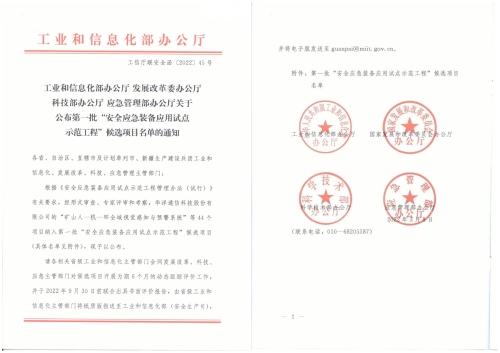 近日,工業(yè)和信息化部辦公廳、國(guó)家發(fā)展和改革委員會(huì)辦公廳、科學(xué)技術(shù)部辦公廳、應(yīng)急管理部辦公廳聯(lián)合公布首批“安全應(yīng)急裝備應(yīng)用試點(diǎn)示范工程”候選項(xiàng)目,共有44個(gè)項(xiàng)目入選,中國(guó)兵器工業(yè)集團(tuán)北重集團(tuán)北方股份公司牽頭申報(bào)的《露天礦山無人駕駛自動(dòng)運(yùn)輸系統(tǒng)》、北化研究院集團(tuán)銀光公司牽頭申報(bào)的《“工業(yè)互聯(lián)網(wǎng)+安全生產(chǎn)”風(fēng)險(xiǎn)監(jiān)測(cè)預(yù)警平臺(tái)》入選名單。