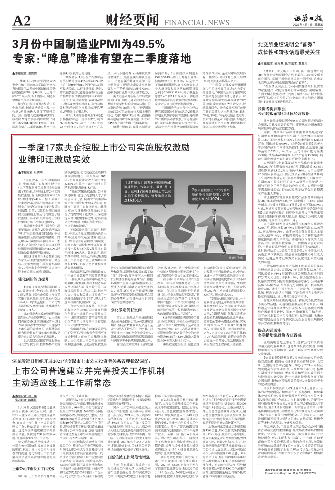 《證券日?qǐng)?bào)》:一季度17家央企控股上市公司實(shí)施股權(quán)激勵(lì) 業(yè)績(jī)印證激勵(lì)實(shí)效
