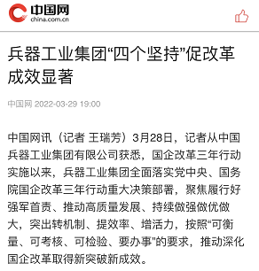 中國(guó)網(wǎng):兵器工業(yè)集團(tuán)“四個(gè)堅(jiān)持”促改革 成效顯著