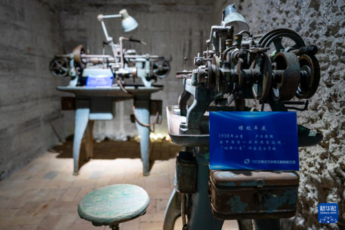 這是5月16日拍攝的中國(guó)光學(xué)歷史博物館內(nèi)收藏的螺紋車床。
