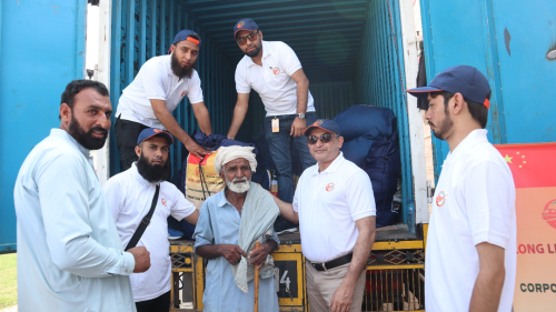 考慮到災(zāi)情期間交通不便,為了確保運(yùn)輸時(shí)效,項(xiàng)目組成立了由21人組成的運(yùn)輸保障志愿小分隊(duì)。9月6日,志愿小分隊(duì)連夜驅(qū)車400公里趕往災(zāi)區(qū),親手將救災(zāi)物品免費(fèi)發(fā)放到當(dāng)?shù)刎毨転?zāi)民眾手中,極大鼓舞了當(dāng)?shù)孛癖娍箵艉闉?zāi)的士氣?!盁o(wú)論遇到什么困難,中國(guó)總是第一個(gè)愿意幫助巴基斯坦的國(guó)家。感謝中國(guó)公司給予我們的支持與幫助,中巴友誼萬(wàn)歲!”當(dāng)?shù)鼐用窦娂姳硎靖兄x。
