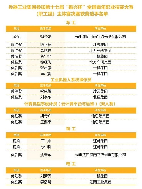 喜報丨兵器工業(yè)集團青年職工在第十七屆“振興杯”全國青年職業(yè)技能大賽(職工組)決賽中勇奪金獎