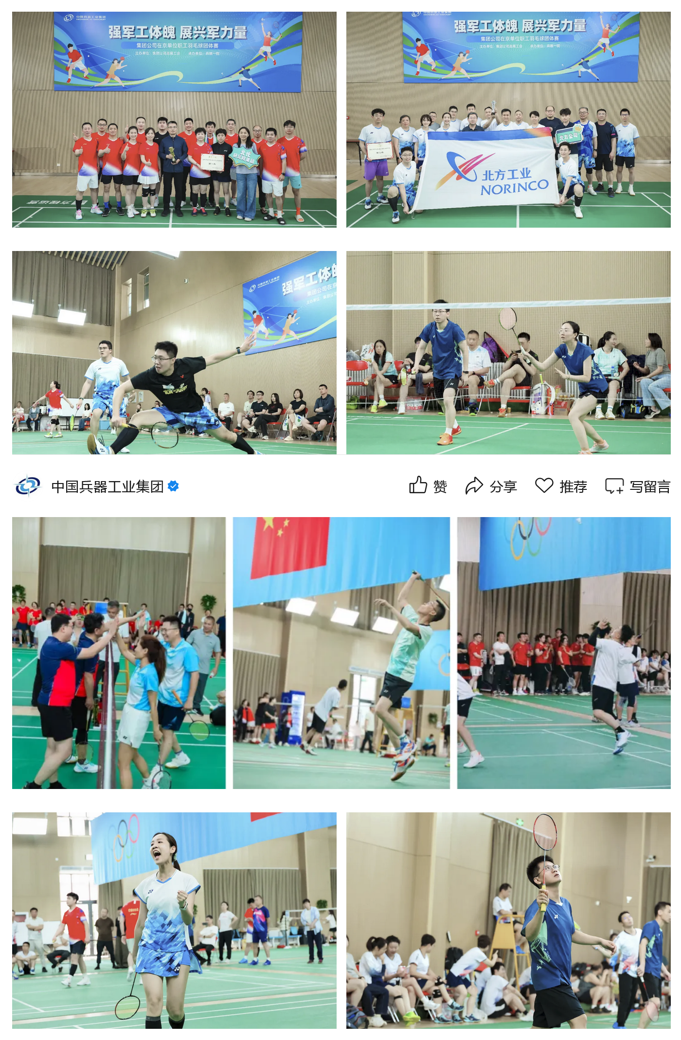 本次羽毛球團(tuán)體賽,是集團(tuán)公司深化開展群眾性體育活動(dòng),貫徹落實(shí)“健康中國(guó)”戰(zhàn)略的生動(dòng)實(shí)踐,也是打造“健康兵器”的積極行動(dòng),進(jìn)一步促進(jìn)在京單位職工溝通交流、增進(jìn)感情、加強(qiáng)團(tuán)結(jié),激發(fā)了廣大職工的向心力凝聚力戰(zhàn)斗力。下一步,集團(tuán)公司將繼續(xù)組織開展形式多樣的文體活動(dòng),豐富職工文化生活,塑造職工健康體魄,為加快推動(dòng)兵器工業(yè)高質(zhì)量發(fā)展作出新的更大貢獻(xiàn)!